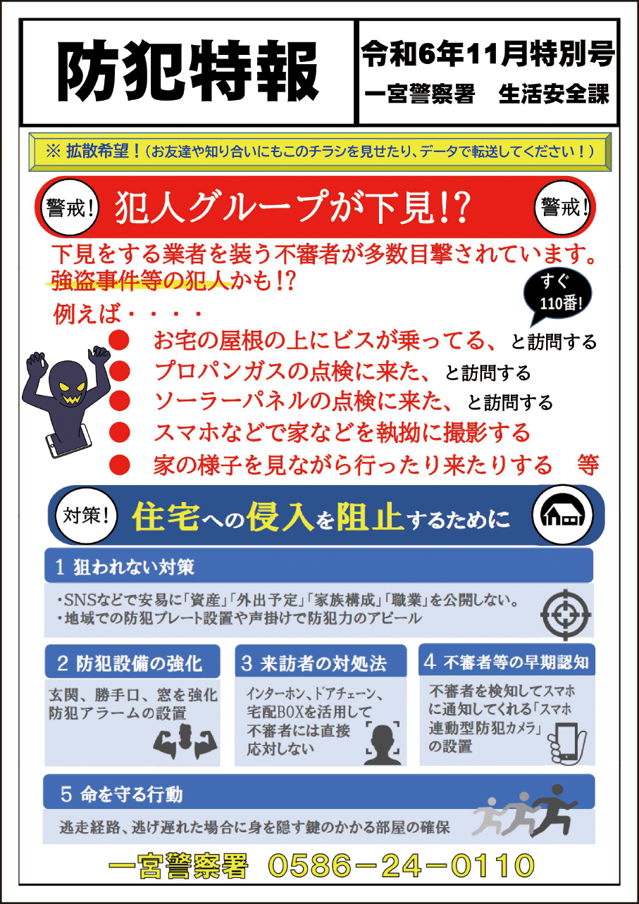 年末にご近所のフェンスに張り紙を見つけました。警察署の生活安全課が作成した「防犯啓蒙」です。 地域住民に防犯意識を高めてもらい、不審者や潜在的な犯罪行為を事前に防ぐことが目的ではないかと思われます。このような注意喚起が行われることで、ガス屋さんに 生じるデメリット&メリットについて考えてみました。